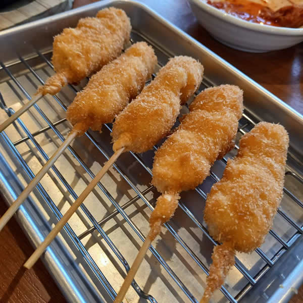 串揚げ1本90円(税込99円)~定番の豚串、うずら串や玉ねぎ串、ピーマン串などヘルシー野菜串も!会社帰りにサクッと1杯飲みたいときにもぴったりです!